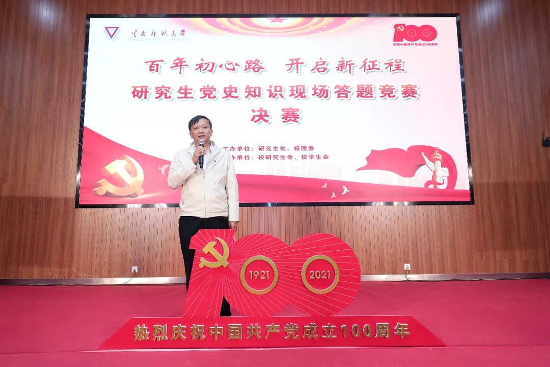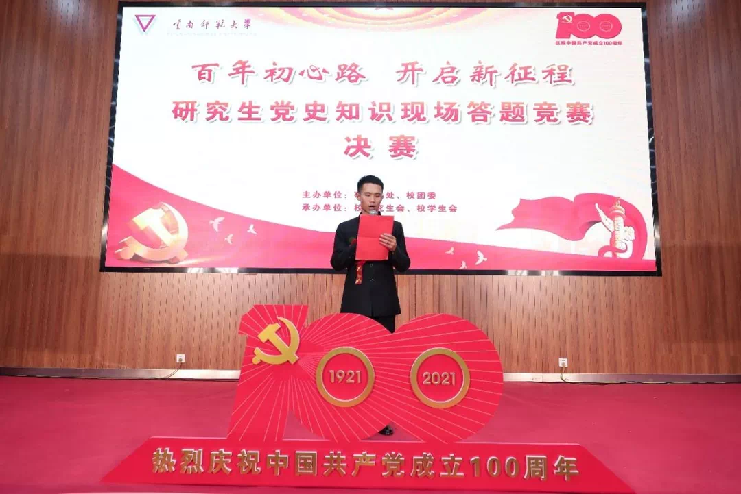为全面贯彻落实习近平总书记在党史学习教育动员大会的讲话精神,进一步推进党史学习教育往深里走、往实里走,检验研究生党史学习教育的效果,6月10日下午,由研究生处、校团委组织的研究生党史知识答题竞赛暨课外科技学术文体活动颁奖典礼在呈贡校区汇学楼2幢报告举行。校党委副书记李宏,学校学工领导小组成员单位领导,各研究生培养单位书记、副书记、辅导员以及研究生代表500余人参加了本次活动。