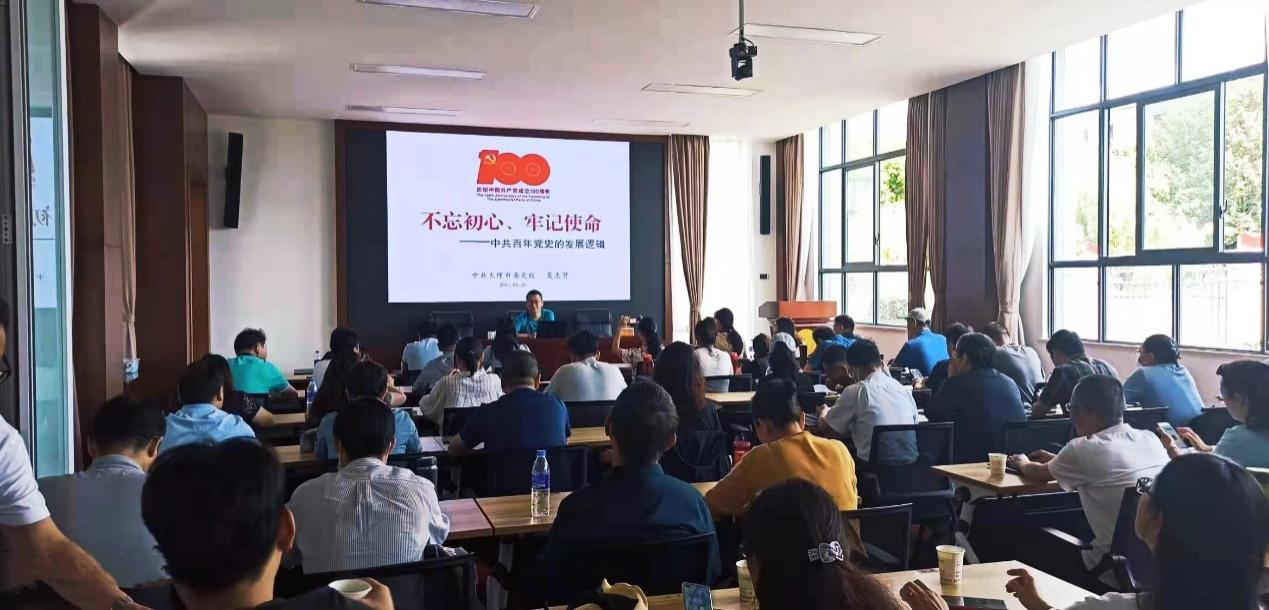 随后,学员们来到大理市委党校教室,认真聆听了大理市委党校夏志贤老师的党史学习教育专题党课《不忘初心、牢记使命——中共百年党史的发展逻辑》。他围绕中共百年党史的逻辑线索、历史回望、汲取奋进智慧和力量等方面作了全面、系统的阐述,用中国共产党百年波澜壮阔的历史激励学员们发扬顽强拼搏精神、弘扬实事求是作风、铭记以民为本的初心,为实现中华民族伟大复兴中国梦而不懈奋斗。