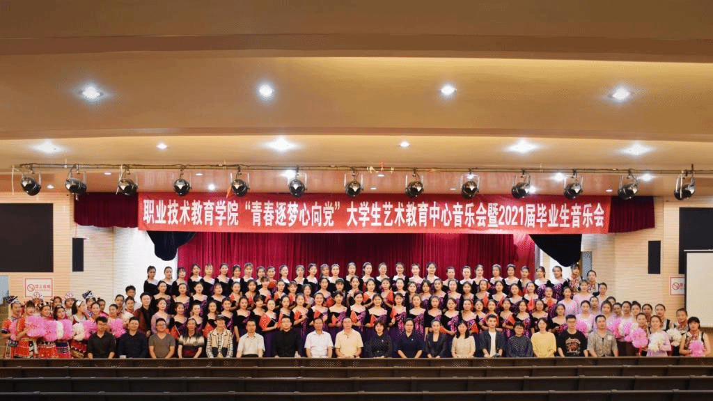 奋斗正青春逐梦新时代为庆祝中国共产党百年华诞充分展现我院学生拼搏进取、昂扬向上的精神面貌6月17日晚职业技术教育学院在一二一西南联大校区田家炳教育书院报告厅举办“青春逐梦心向党”大学生艺术教育中心音乐会暨2021届毕业生音乐会学院党委书记刘虹、党委副书记向斯楠、副院长王黎智、副院长侯昌东以及各职能部门领导和老师出席演出