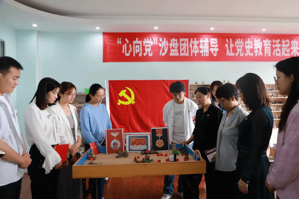 活动以年轻党员讲党史故事开场,以团体沙盘心理技术为载体进行。在主持人的引导下,参与者回顾了从石库门到天安门,从兴业路到复兴路,我们党为人民而生,因人民而兴,为人民谋幸福的初心,进行沙具的摆放和象征性解释,共同完成了以“复兴之路”为题的沙盘创作在形式新颖、趣味十足的沙盘活动中,党员们动手又动脑,在学习中创造,在体验中成长,让党史学习走“新”又走“心”,真正让党史教育活起来。大家纷纷表示,将会铭记党发展的历史,珍惜当前美好生活,把红色基因融入自身血脉,积极工作,不断提升自己。