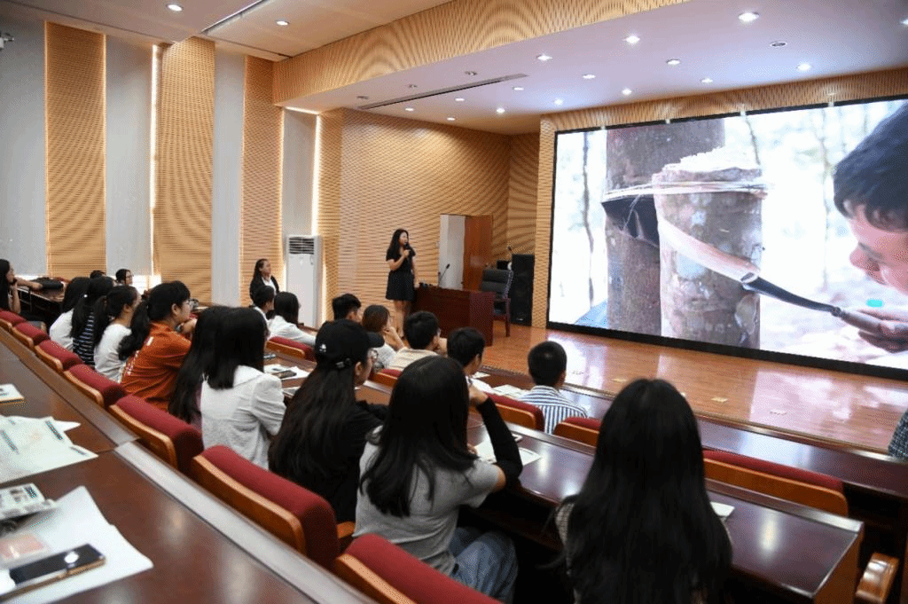 会后,学院组织了一场针对老挝语和泰语专业学生的小型招聘会。招聘会上,两位企业领导就企业的发展现状和人才需求进行了介绍,学生对服务云南和周边国家社会经济发展充满了兴趣,双方就企业条件、职后发展、相关待遇等问题进行了深入沟通。