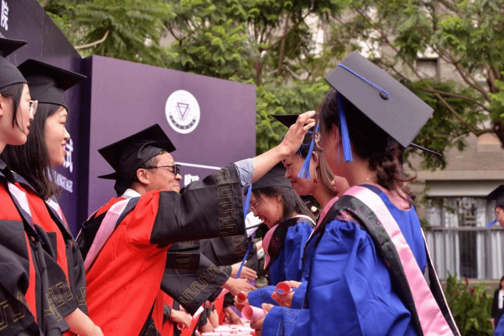 随后,外国语学院学位分委员会为毕业生拨穗、颁发学位证。毕业学子们有序走到台前,老师们微笑着为学生们拨穗,并为每一位学子送上毕业寄语,祝愿学子们百尺竿头更进一步。15名毕业生代表为老师们送上鲜花致以真诚的感谢,感谢学校和老师们多年的培养,一朝沫杏雨,终身感师恩毕业学子们将永远铭记老师们的教诲,继续砥砺前行。