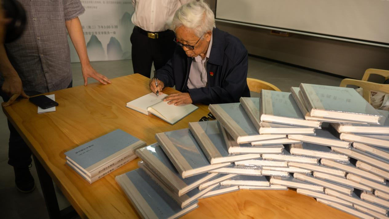 分享会最后,张文勋先生向我校图书馆赠送著作,并为到场师生签名赠送《张文勋学术谱录》,现场氛围温馨。