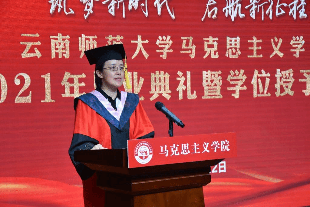 毕业典礼是马克思主义学院立德树人中最重要的环节,学院通过隆重的毕业典礼,进一步加强毕业生的思想教育,增强毕业典礼的仪式感,上好毕业生的“最后一堂课”,激发毕业生爱校荣校、感恩奉献和成才报国的热情。在中国共产党成立100周年的这个伟大历史时期,学院希望借此机会,引导每一位毕业生和在校生坚定信念,探求真理,志存高远,将个人命运与国家民族的命运紧密地联系在一起,担负起时代的责任和历史的使命。