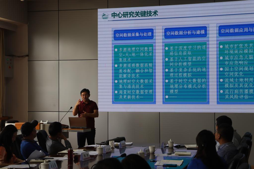会上,地理学部主任、工程研究中心主任杨昆教授围绕工程中心概况、建设成果、产业转化、学科支撑、存在的问题五个方面进行了介绍,并介绍了教育部科学技术与信息化司本年度组织开展的工程中心评估工作情况。