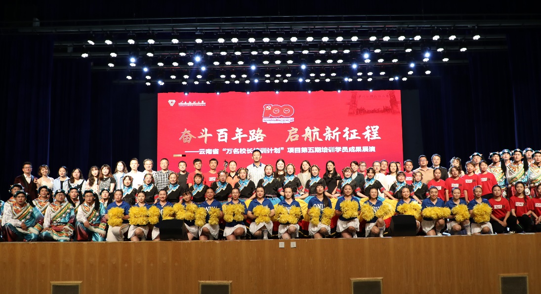 7月12日下午,云南省“万名校长培训计划”第五期“奋斗百年路 启航新征程”学员学习成果展演在昆明理工大学红土会堂举行。项目办全体工作人员及全体参训学员参加了本次展演活动。