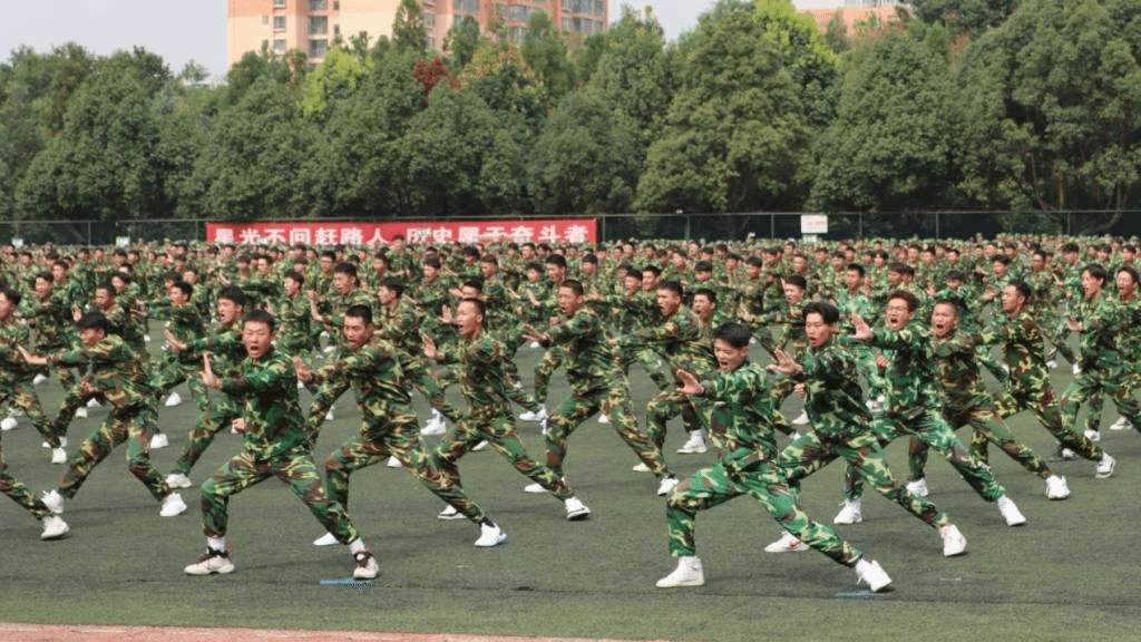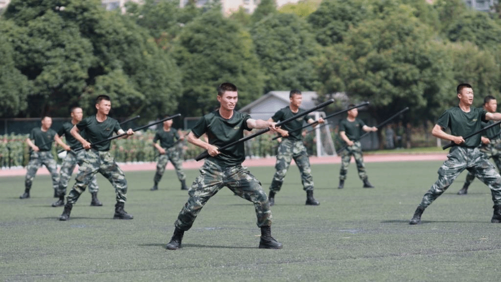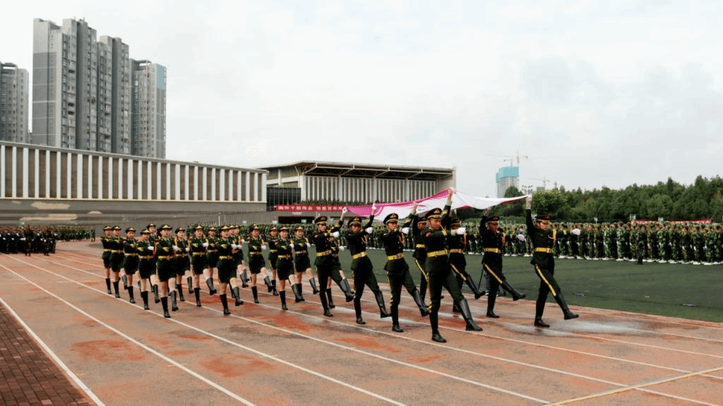 带训教官们以身作则,以国防教育教会学生如何磨练坚韧意志,通过每日披星戴月的军事技能演练,带来了现场震撼人心的军事技能展示,充分展现了中国军人坚韧刚强的意志,赢得了全场热烈的掌声。