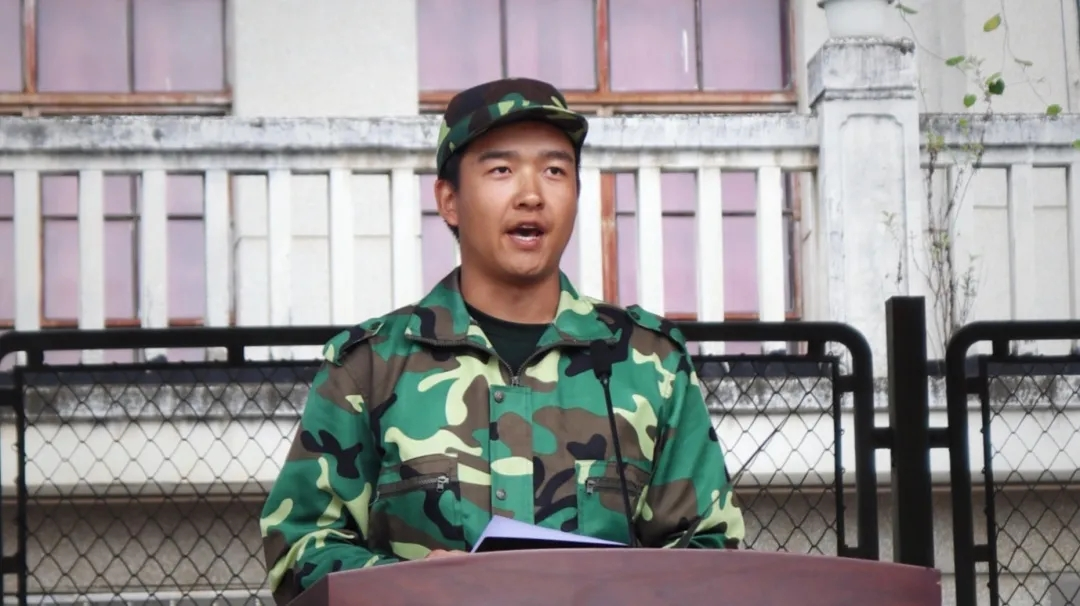 一二一西南联大校区一连军训优秀学员代表奎俊宏同学在发言中表示,要把军训学到的优良作风带到今后的学习生活中,继续弘扬西南联大爱国主义精神,用青春热血在实现国家第二个百年奋斗目标的路上拼搏奋斗。