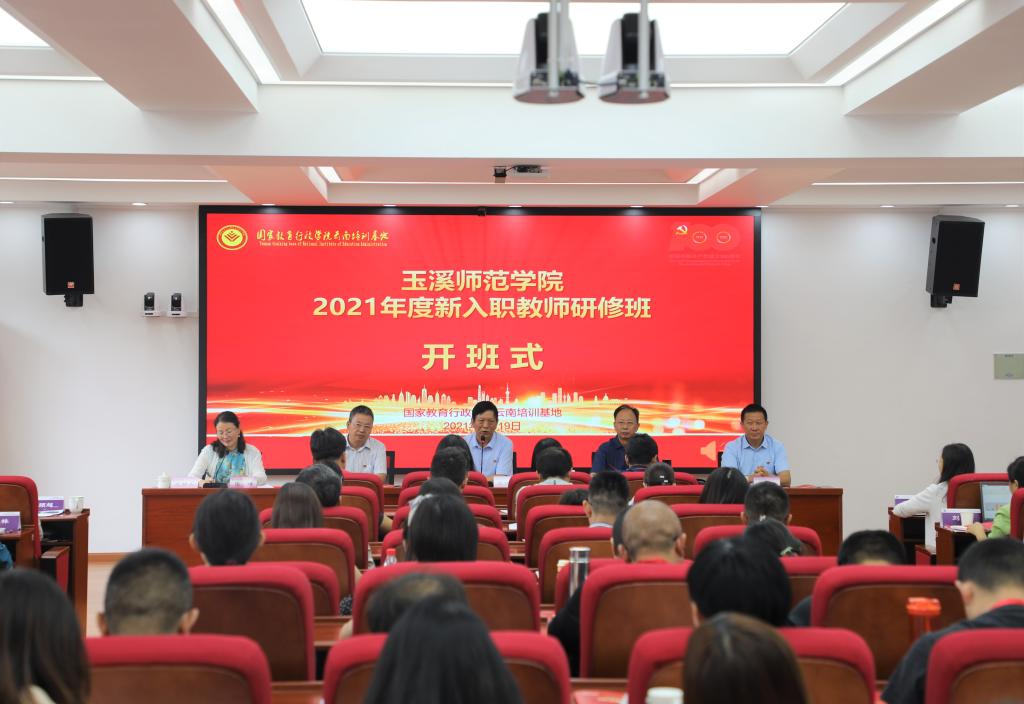 为全面加强教师队伍建设,教育引导新入职教师尽快适应教育教学工作的需要,进一步提高新入职教师政治觉悟、道德修养和专业素质,7月19日上午,由玉溪师范学院委托,国家教育行政学院云南培训基地承办的玉溪师范学院2021年度新入职教师研修班在我校一二一联大校区顺利举办。玉溪师范学院党委书记张学武、院长马力、党委副书记姜家雄,云南师范大学副校长蔡金红,以及玉溪师范学院共102名新入职教师参加开班仪式。仪式由云南西南联大干部教育学院专职副院长、国家教育行政学院云南培训基地办公室主任匡锦主持。