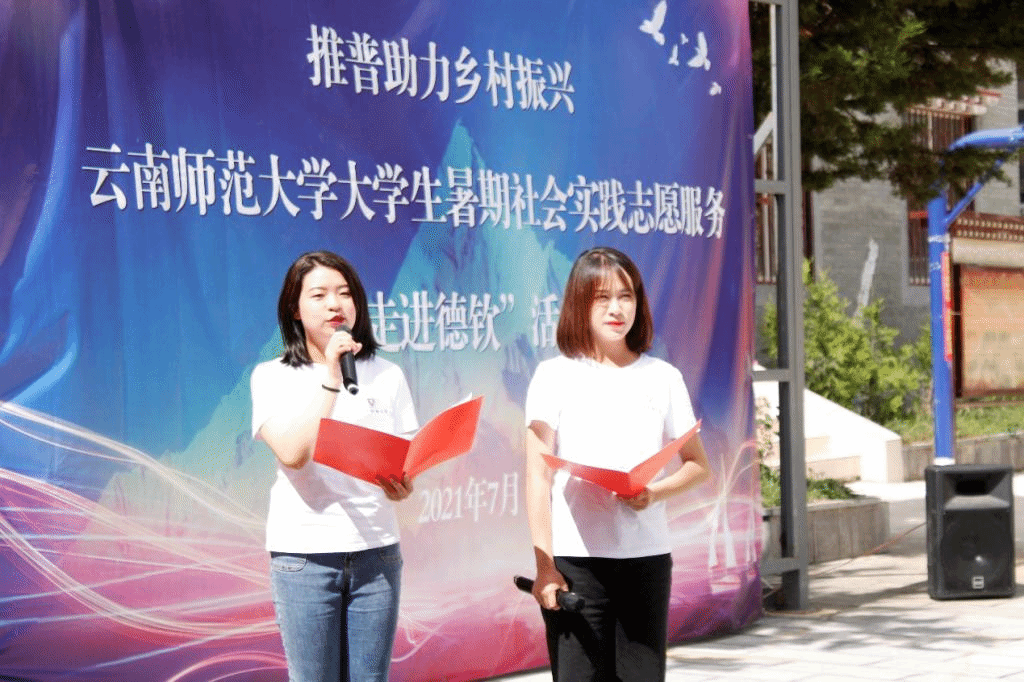 7月21日至22日,由云南师范大学国家语言文字推广基地组织、传媒学院师生组成的“推普助力乡村振兴”全国大学生暑期社会实践志愿服务团队赴迪庆州德钦县升平镇,对当地群众开展推广普通话志愿服务。