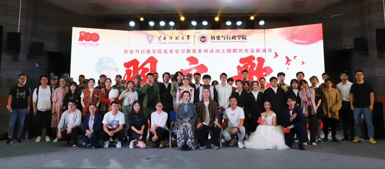 为热烈庆祝中国共产党成立100周年,持续深入推进党史学习教育,讲好身边优秀党员同志的故事,6月30日晚,历史与行政学院于汇文三区报告厅顺利公演话剧《羽之歌》。学院党委副书记徐振坤,信息学院团委书记邓王、文学院团委书记周煜辰、法学与社会学院辅导员贾大鹏、数学学院辅导员袁弘杰、外语学院辅导员李柯辉以及历史与行政学院400余名师生到场观看。