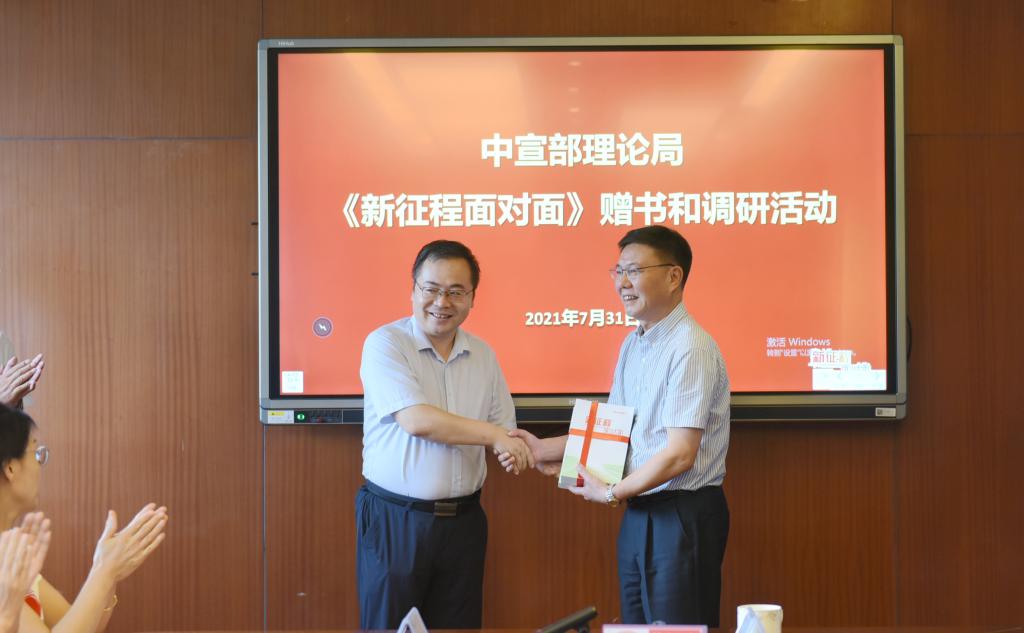 7月31日,中宣部理论局、学习出版社到我校开展《新征程面对面》赠书活动,并围绕2022年通俗理论读物编写工作开展调研。