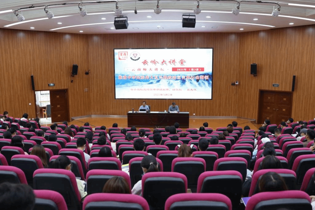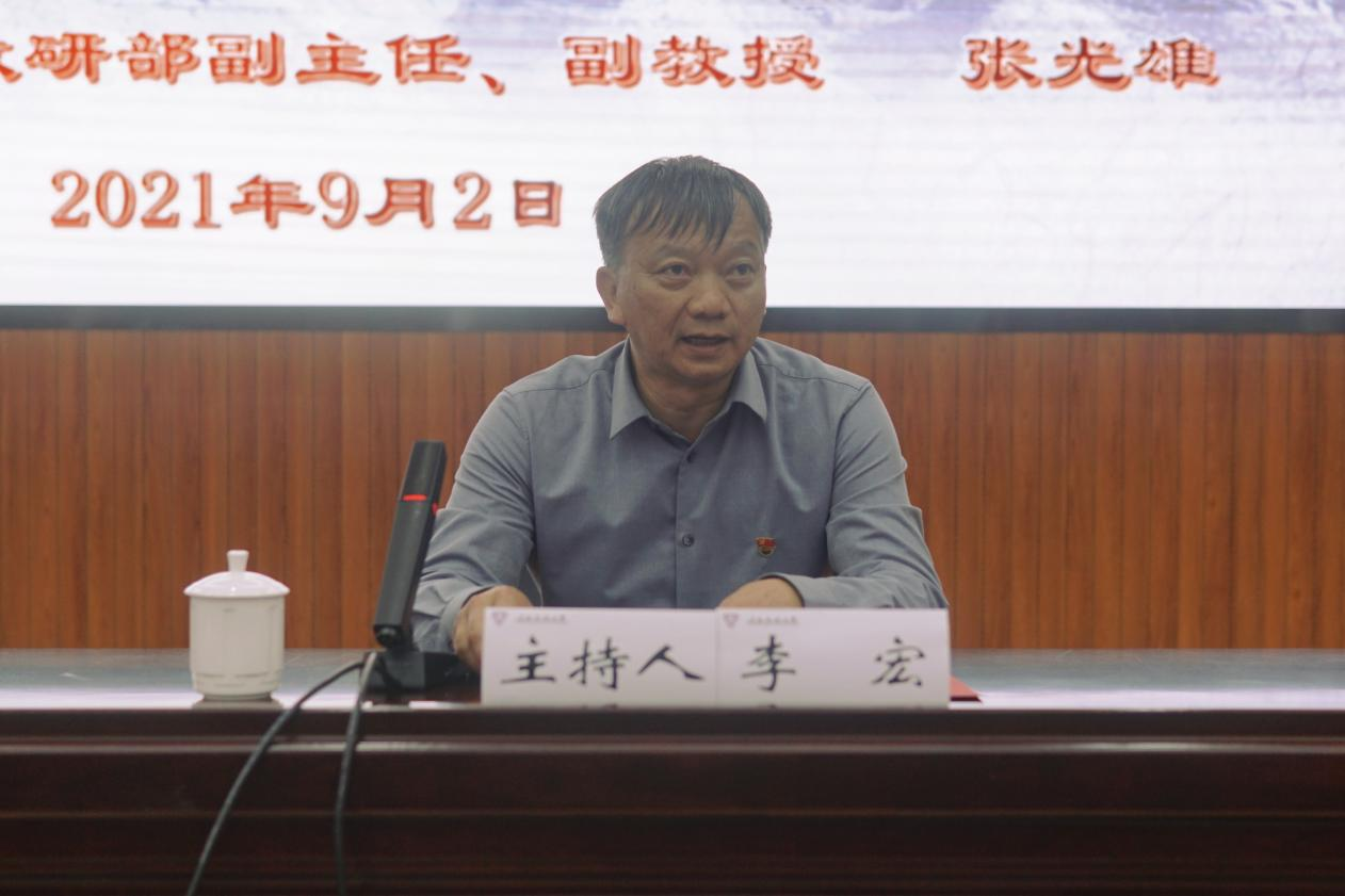 为深入学习习近平总书记在庆祝中国共产党成立100周年大会上的重要讲话精神, 9月2日下午,我校特邀云南省委党校党建教研部副主任、云南省党建研究会特邀研究员张光雄在呈贡主校区汇学楼报告厅,作题为《推进中华民族伟大复兴的政治宣言和行动纲领——深入学习贯彻习近平总书记“七一”重要讲话精神》的专题宣讲。宣讲会由校党委副书记李宏主持,200余名师生代表参加了现场宣讲会。为了满足其他广大师生的学习需求,宣讲报告会还设置了20余个网络直播分会场,各学院、各部门的广大师生员工通过网络直播的方式同步聆听了宣讲会。