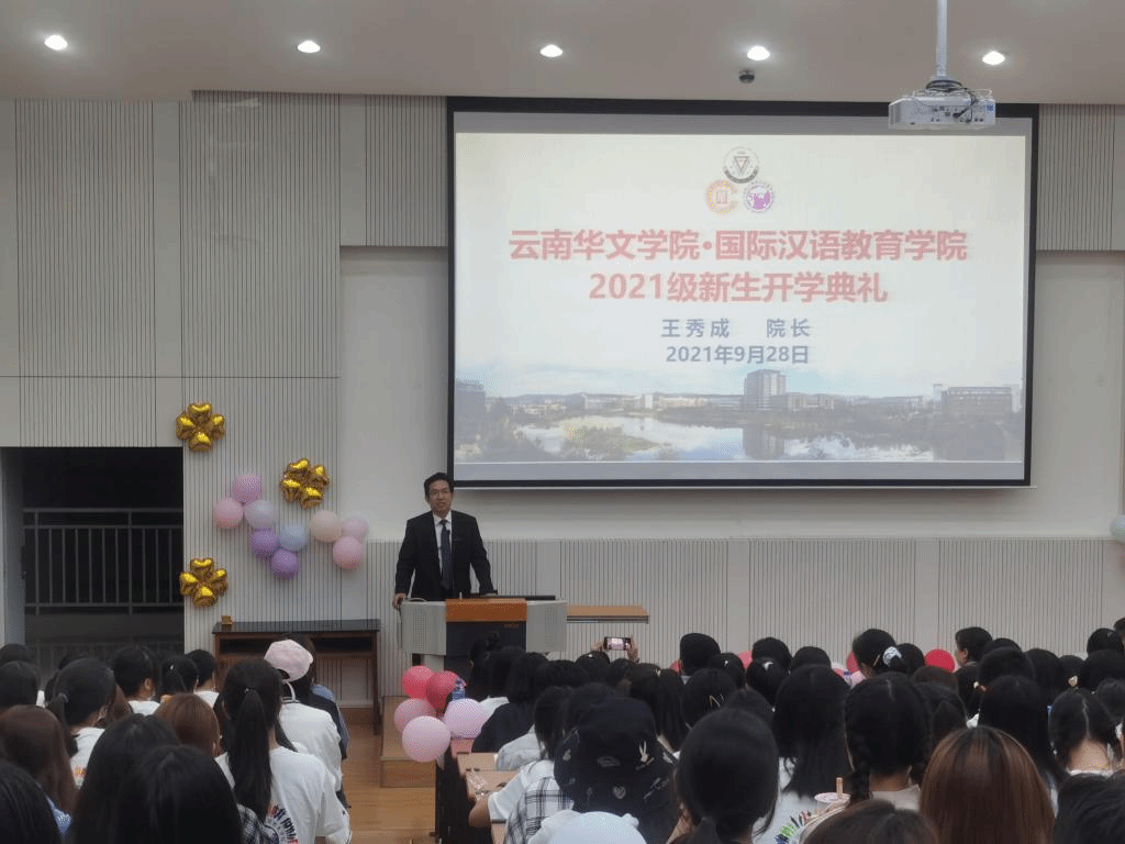 9月28日晚,云南华文学院、国际汉语教育学院在同析2栋报告厅举行了2021级新生开学典礼,学院领导、辅导员、班主任及全体2021级本研新生参加了开学典礼,典礼由学院党委副书记常数主持。