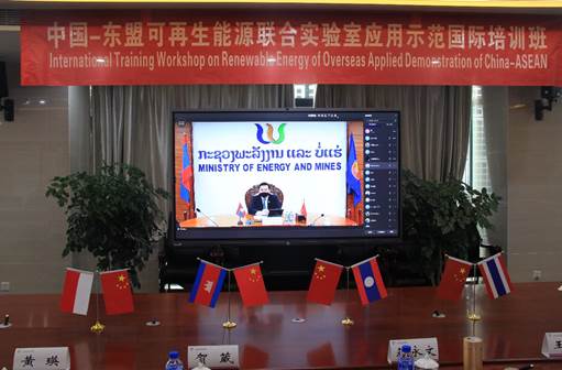 2021年10月11日上午,由中国科技部国际合作司主办,中国科学技术交流中心组织实施、云南省科技厅管理、云南师范大学和老挝能源与矿业部可再生能源与新材料研究所联合承办的“中国—东盟可再生能源联合实验室应用示范国际培训班”在云南师范大学能源与环境科学学院会议室举行线上开班仪式。老挝能源与矿业部副部长Sinava SOUPHANOUVONG、老挝能源与矿业部可再生能源与新材料研究所所长Mayty VONGKHAMSAO,中国科技交流中心副主任庄嘉,云南省科技厅科技合作一处处长贺葳和调研员王翠,云南师范大学党委书记兼中国—老挝可再生能源开发与利用联合实验室主任蒋永文、华文学院院长王秀成、对外合作交流处处长黄瑛、科学技术处处长李明、能源与环境科学学院党委书记刘莹等领导、教师和学员参加了开班仪式。仪式由李明处长主持。