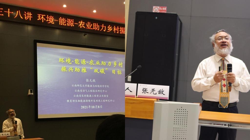 值联合国《生物多样性公约》第十五次缔约方大会在昆明召开之际,10月8日晚,由学生处承办的第三十八讲云师讲坛,邀请了被同学们称为“大胡子教授”的张无敌老师为我校师生做了以“环境—能源—农业助力乡村振兴助推‘双碳’目标”为主题的报告,分享了他多年来在教学科研实践中,如何改善生态环境,保护生物多样性的一些思考和启示。此次讲座由能源与环境科学学院党委副书记范荣康主持,来自各学院(学部)、万名校长培训班的600多名师生通过网络直播观看和现场聆听了本次讲座。