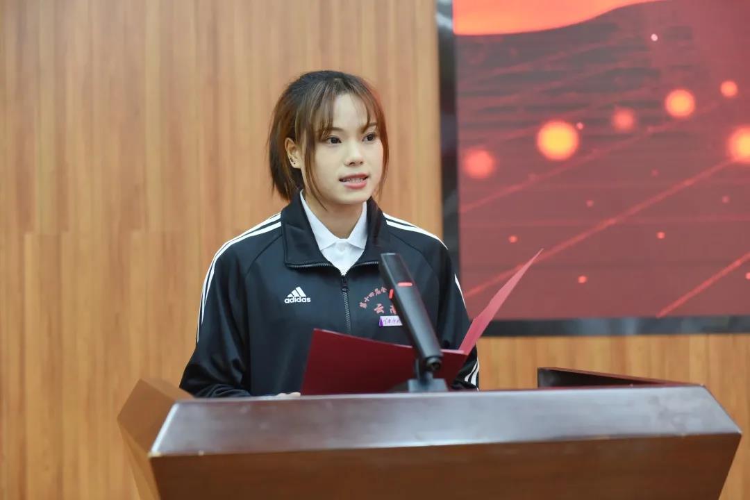 东京奥运会皮划艇男子1000米单人划比赛亚军、双人划比赛亚军,第十四届全国运动会皮划艇男子1000米单人划亚军、双人划冠军,2016级运动训练本科生刘浩发言。他分享了自己在无数个寒冬酷暑,无数次执桨破浪,无数回心理对抗中,克服挫折伤病、坚持皮划艇训练的个人成长经历。他说:“今天我能够获得这样的成绩,要感谢国家的培养,感谢家人和教练的支持与陪伴,感谢母校云南师范大学的栽培。今后我会将这份感谢化作行动,继续秉承‘刚毅坚卓’的精神,不断挑战体能与意志力的极限,为祖国争取更多的荣誉!”