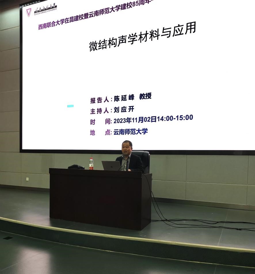 11月2日,国家杰出青年基金获得者、教育部特聘教授、南京大学固体微结构物理国家重点实验室主任陈延峰教授,清华大学高能物理研究中心主任、教育部高等学校大学物理课程教学指导委员会主任委员王青教授应我校邀请,分别为师生作题为“微结构声学材料设计与应用”“碎片与重构、知识图谱与师范教育”的学术报告。