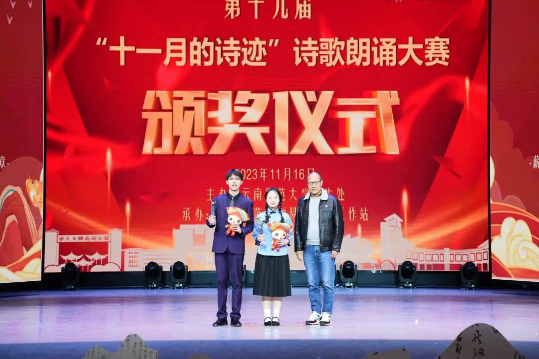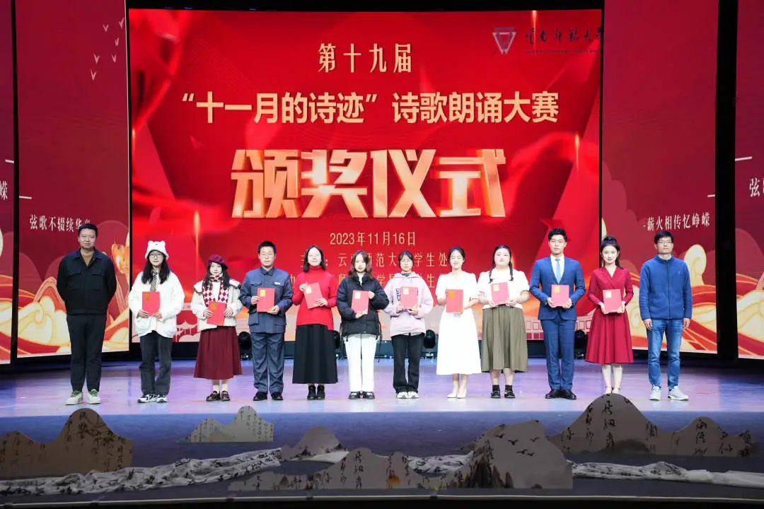 评委组组长、文学院教授骆锦芳对16组选手的朗诵作品进行了点评,他深有感触地说:“‘十一月的诗迹’诗歌朗诵大赛传递着云师学子的爱党爱国之声,表达着对西南联大精神的守望,对每一位云师人都有独特的意义。”