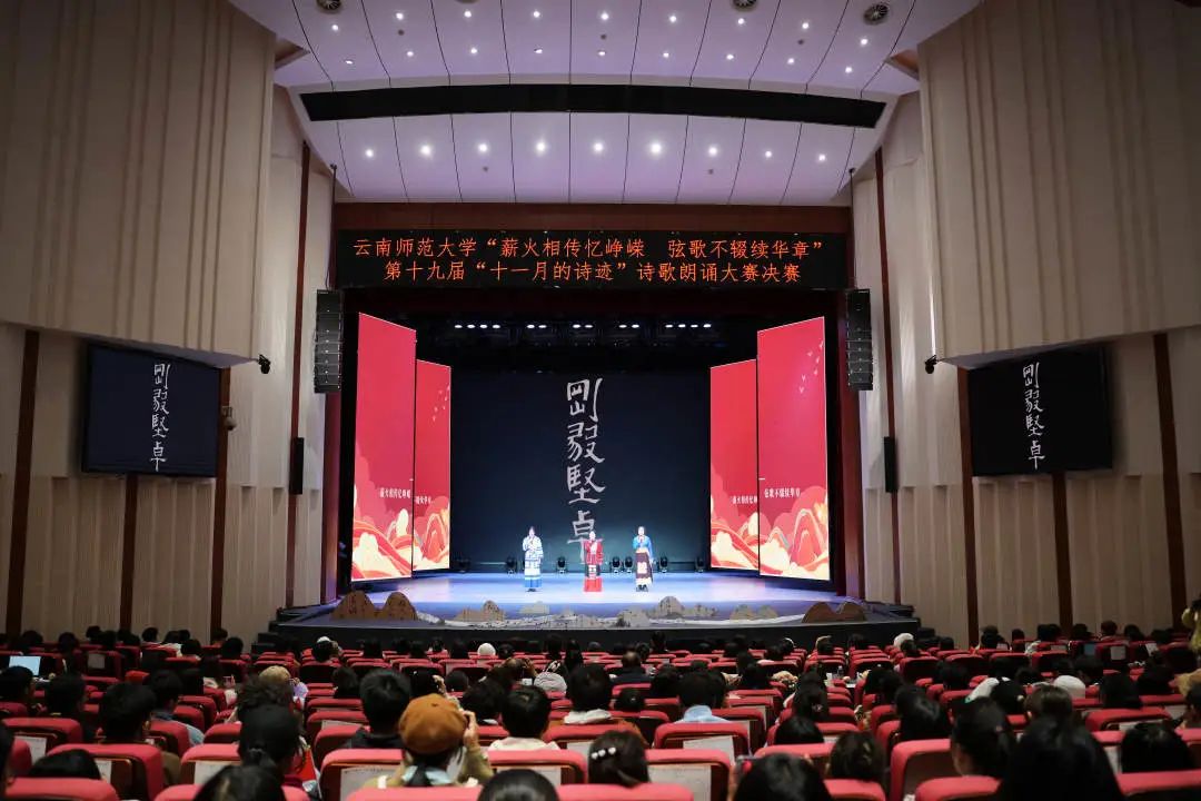 献礼学校八十五芳华,传承弘扬西南联大精神。11月16日下午,由学生处主办、易班学生工作站承办的“薪火相传忆峥嵘 弦歌不辍续华章”第十九届“十一月的诗迹”诗歌朗诵大赛决赛在我校呈贡校区明德楼演播厅举行。校党委副书记李宏、副校长武友德莅临比赛现场观赛指导。