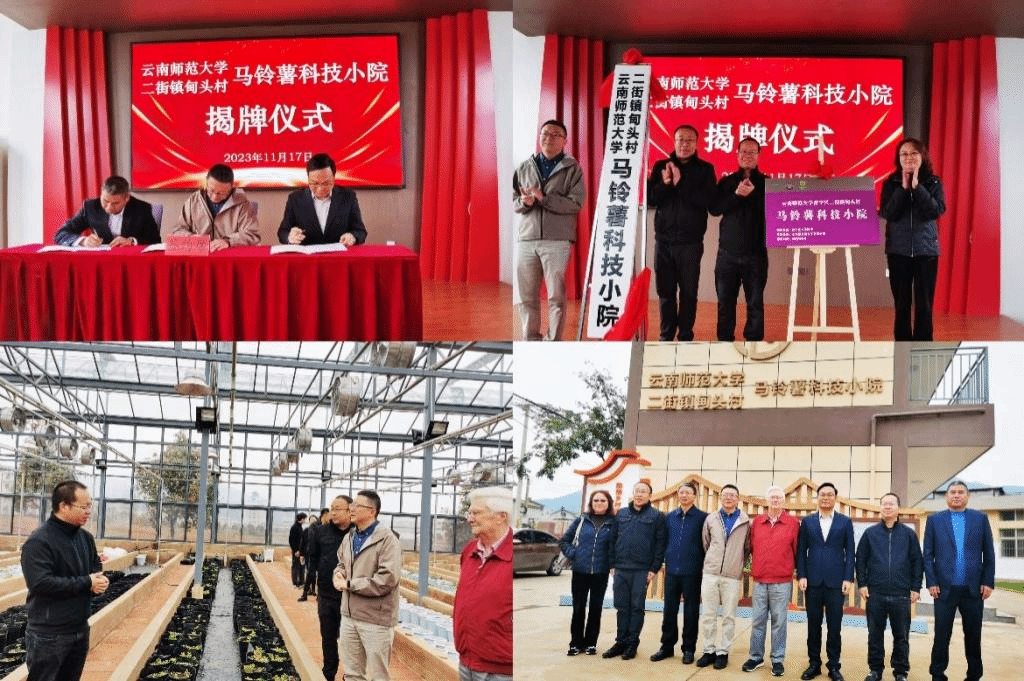 仪式上,我校马铃薯科学研究院、云南福贵磷化工有限公司及二街镇甸头村民委员会共同签署了三方合作框架协议。同时,还进行了甸头马铃薯科技小院、昆明市“春城产业导师”工作站及云南(昆明)尚轶马铃薯营养专家工作站揭牌。