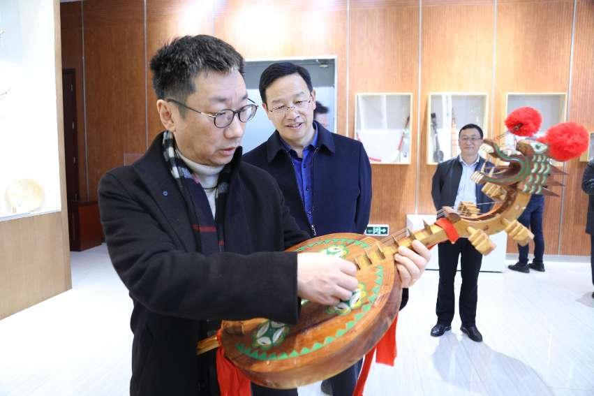 李心草一行还参观了音乐舞蹈学院中国——南亚东南亚国家非遗音乐舞蹈教育资源数字化陈列馆,对未来两校通过乐器陈列馆联合开展科研项目进行初步商讨。