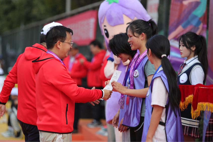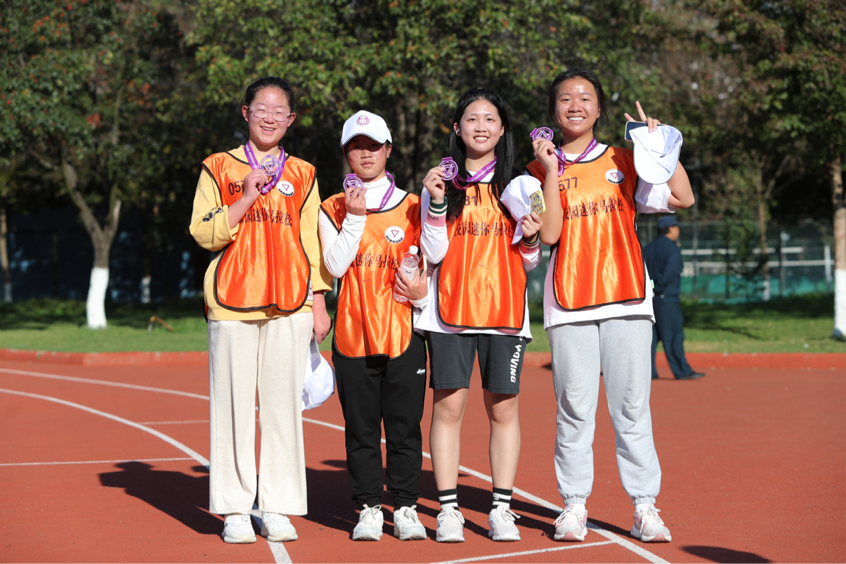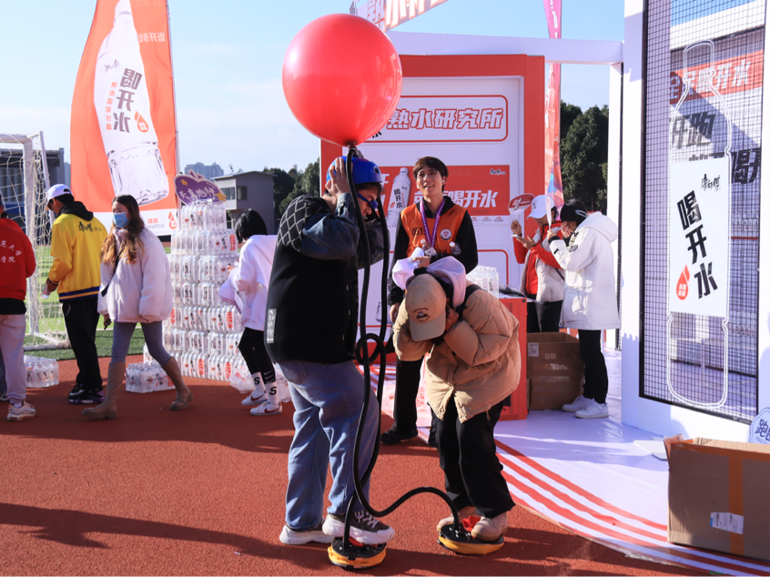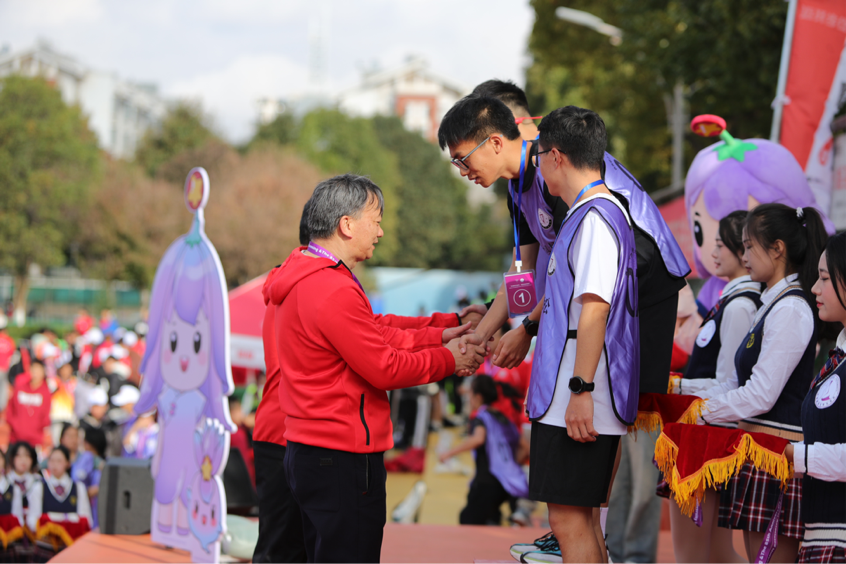 扬武术之魂,展少年风姿。运动员们在跑道挥洒汗水之时,体育学院学子为大家带来精彩的武术表演,为运动员们加油助威。补给站的志愿者们,为运动选手提供了暖心服务,也是跑道上一道靓丽的风景。