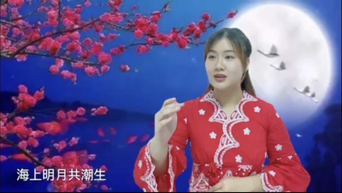 王玉菲同学在总决赛朗诵的《春江花月夜》,语言流畅,情感充沛,表现出诗作细微、丰富的层次,富有感染力,得到了评委的一致好评。