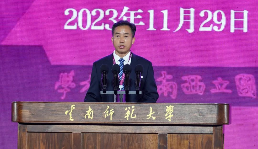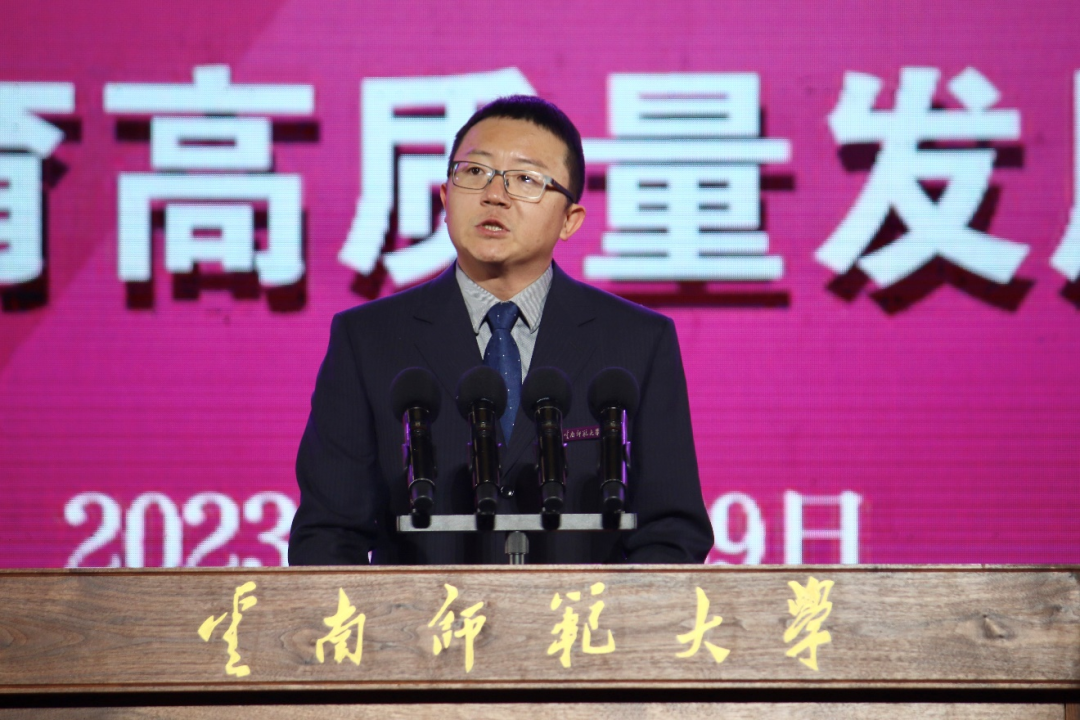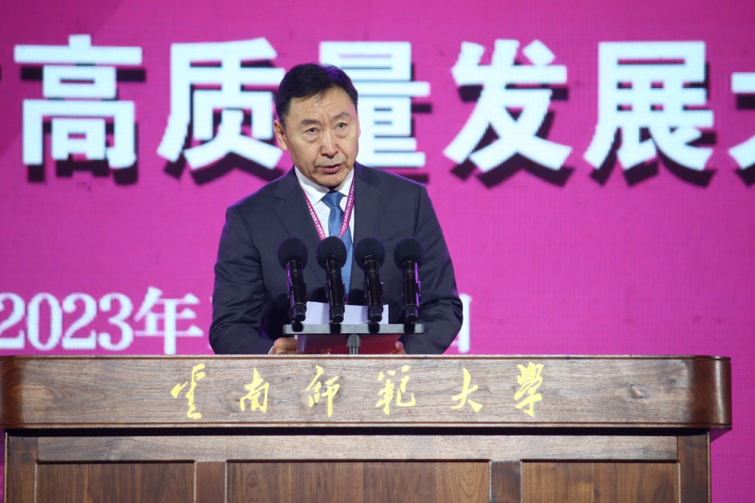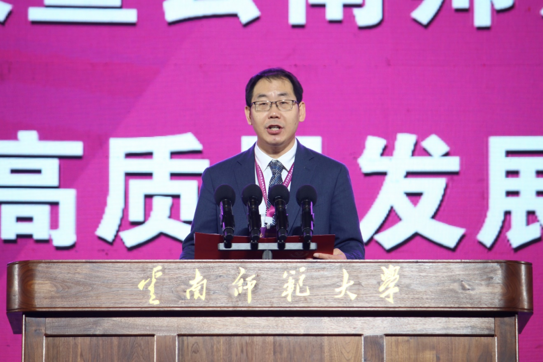 姜恩来代表中国高等教育学会,向云南师范大学建校85周年表示祝贺。他充分肯定了我校在教育教学改革、服务国家战略需求和区域经济社会发展等方面取得的成绩,并对我校高质量办学提出希望。要以党的全面领导为统领,坚持社会主义办学方向;以立德树人为根本任务,加快培养一流人才;以服务国家为最高追求,强化学校办学特色。他期待云南师范大学在新的历史起点上,扎根云岭大地,弘扬联大精神,矢志教师教育,加快推进学校事业高质量发展。
