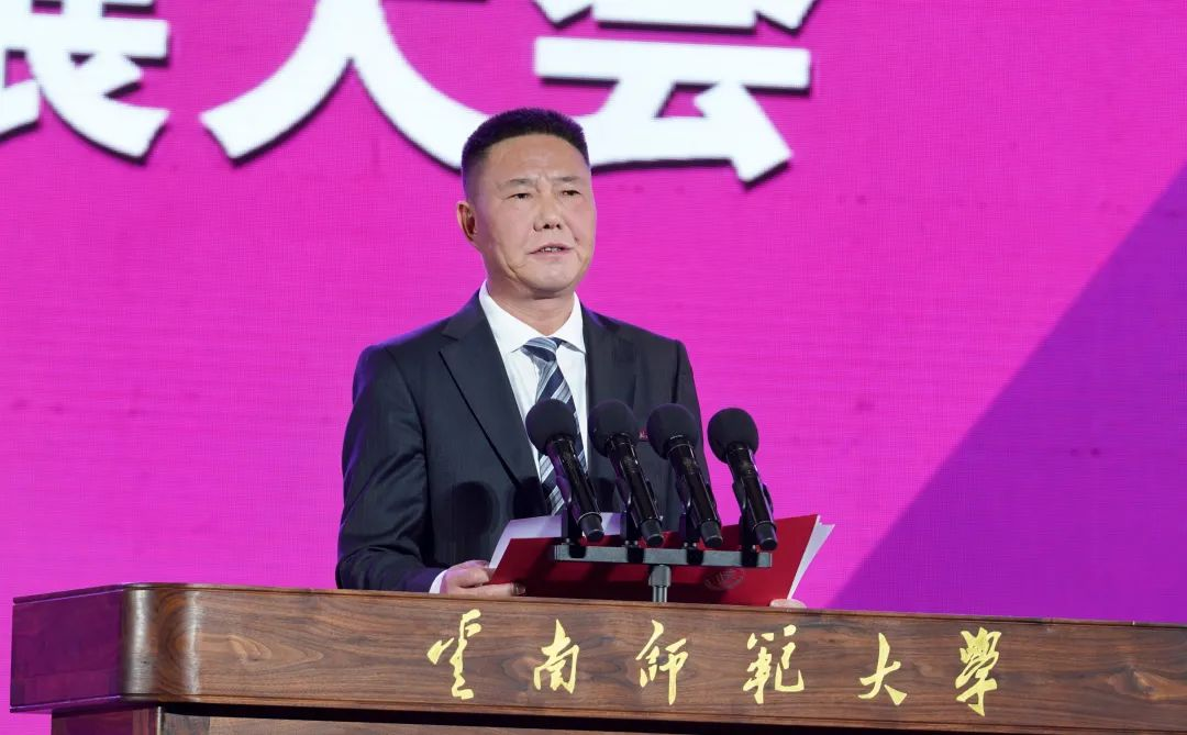 冯继康向云南师范大学全体师生员工和海内外校友表示祝贺。他简要回顾了西南联大的办学历程,对云南师范大学办学成效表示赞许。他表示,山东师范大学愿与云南师大和其他兄弟院校一道,紧紧把握新时代高等教育高质量发展新机遇,同声相应、同气相求,积极开展更高层次、更广领域、更大力度的交流合作,共同为加快建设教育强国、科技强国、人才强国,实现中华民族伟大复兴作出新的更大贡献。