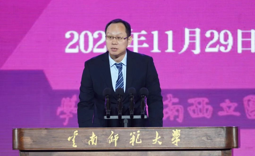 云南师范大学校长王德强在致辞中表示,西南联大是云南靓丽的文化名片,在高等教育史、学术史、革命史上留下了浓墨重彩的一笔。传承弘扬西南联大精神,要增强为党育人、为国育才的使命担当,在服务云南教师教育和基础教育高质量发展中争做“排头兵”“领头雁”;要积极服务国家战略,在云南面向南亚东南亚辐射中心建设中争做“先行者”;要讲好西南联大故事,弘扬西南联大凝结成的爱国进步、刚毅坚卓、包容和合的民族精神,争做西南联大精神的“传承者”。王德强指出,面对新征程,云南师大将以习近平新时代中国特色社会主义思想为指导,聚焦一流学科建设,抢抓云南从“边疆”变为“前沿”的重大历史机遇,发挥好区位优势,谋划好高水平的教育对外开放,主动融入与南亚东南亚国家乃至全球的教育交流合作,奋力建设西部领先、辐射南亚东南亚的高水平师范大学。