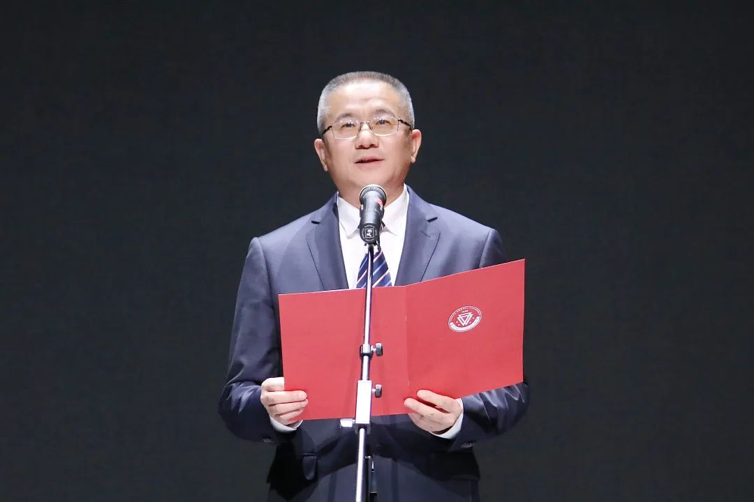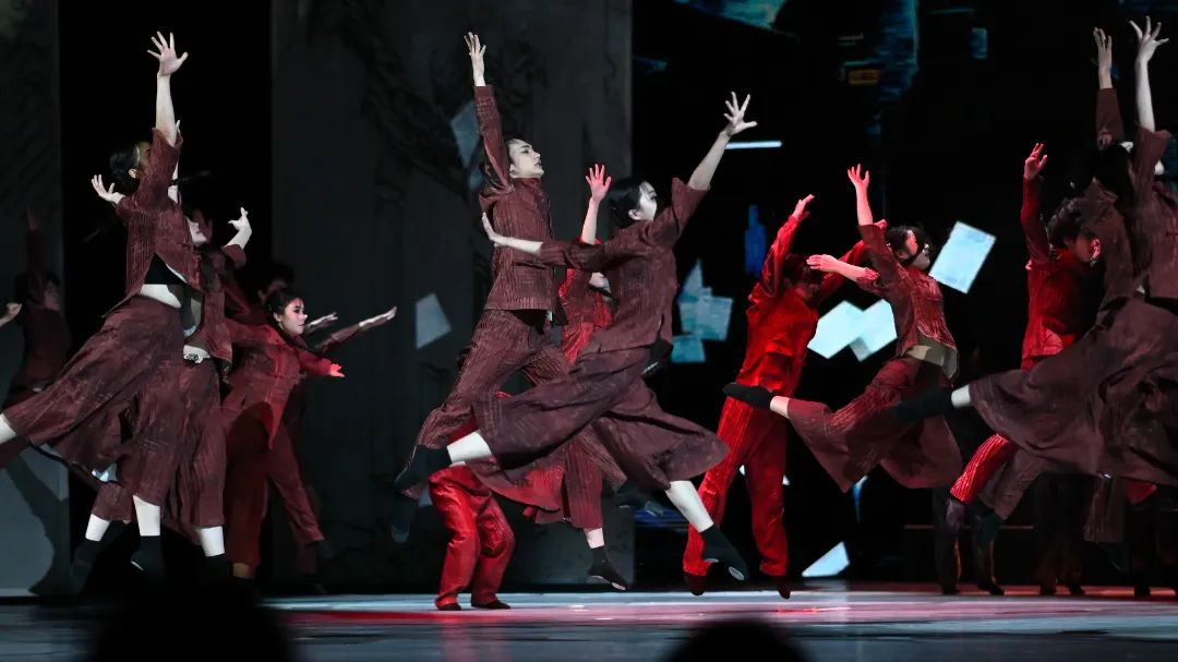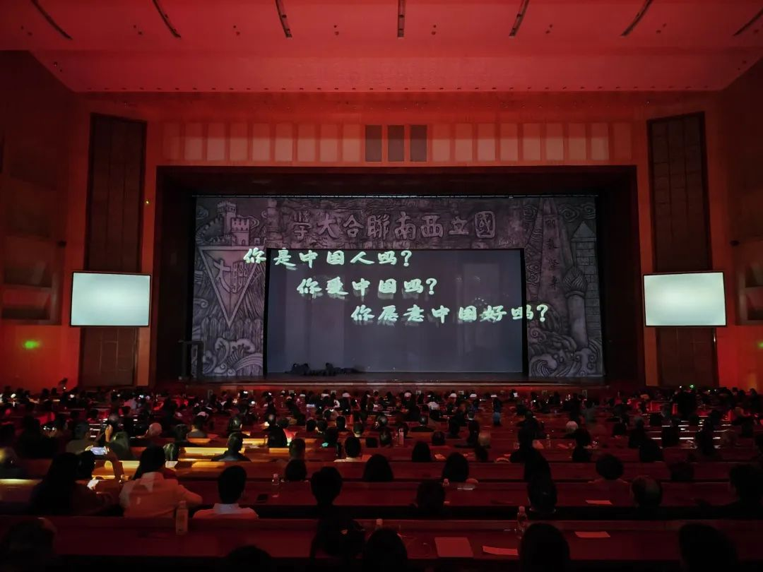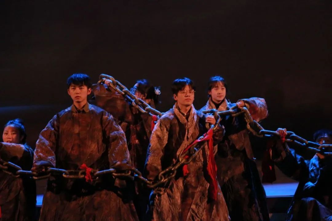 校党委书记张祖武在致辞指出,作为西南联大留在云岭大地上的唯一血脉,认真贯彻落实习近平总书记考察云南重要讲话精神和考察我校西南联大旧址重要指示精神,讲好“西南联大教育救国的故事”和“闻一多发表‘最后一次演讲’舍生取义的故事”,传承弘扬好西南联大精神,是历史赋予云南师范大学的应有之义,是学校责无旁贷、义不容辞的光荣使命。本次《西南联大》大型音乐舞蹈史诗的创作是一次新的尝试,剧中演职人员均为云南师范大学在校师生,对西南联大有特殊的感情,有信心通过排演和提升,将剧目打造成为“留得住、传得了”的经典艺术作品,成为面向全省乃至全国“永不落幕的行走的思政课”。随后,张祖武敲响西南联大“上课钟”,钟声悠扬而深沉,拉开了《西南联大》剧目的帷幕。