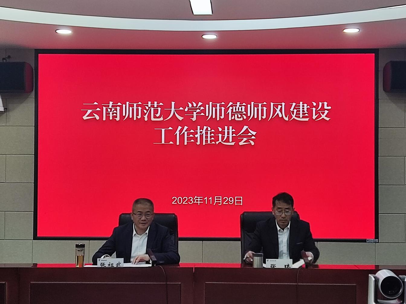 11月29日下午,我校参加了省教育厅组织召开的2023年全省教育系统师德师风建设工作视频会,会上校党委书记张祖武就我校师德师风建设作了交流发言。随后,学校在呈贡校区340会议室第一时间召开师德师风建设工作推进会,张祖武就推动落实2023年全省教育系统师德师风建设工作视频会议精神作安排部署,各学院(部)党政主要负责人、师德建设与监督委员会成员单位主要负责人参加了会议,会议由校党委副书记张玮主持。