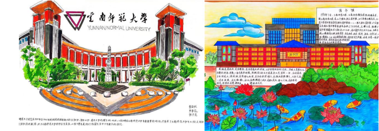在任课教师的指导下,国际学生以小组为单位积极准备,经过一个多月的校园文化体验、材料收集,以多样的绘画风格和深刻的历史理解,图文并茂地呈现了学校的标志性校园景观,充分展现了学院师生的团队精神和艺术创意,让国际学生更加深入地了解学校历史、了解中国文化。