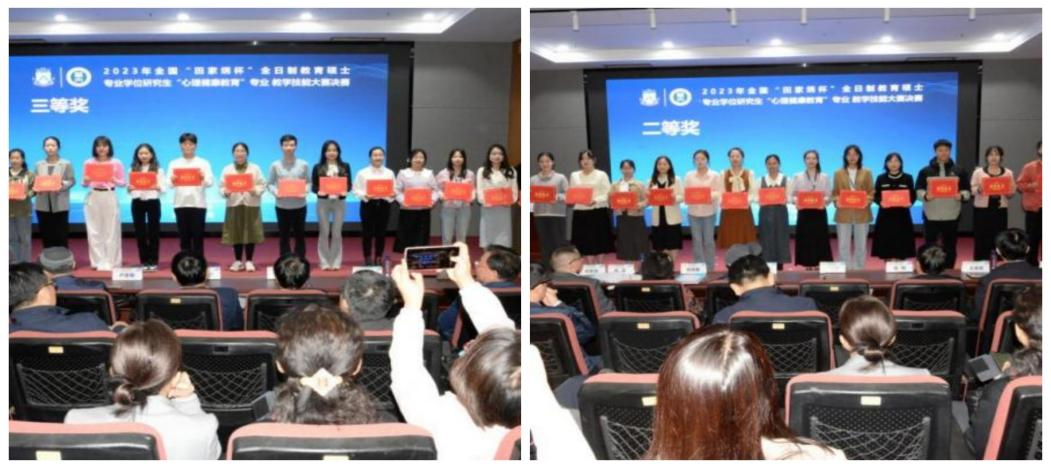本次比赛分为初赛和决赛两个阶段,历时5个月,共有来自西南大学、华东师范大学、东北师范大学、华中师范大学等76所高校的307名心理健康教育专业的研究生参加初赛,经专家对选手在线提交的教学设计和教学视频进行匿名评审,最终共153名选手晋级决赛。决赛采用现场比赛的方式进行,比赛内容包括模拟授课和现场答辩两部分,由现场抽题、限时备课、模拟授课、现场答辩、即时评分等环节构成,全面考察选手的学科专业素养和教学实践能力。最终按照10%、20%、30%的比例决出了一等奖、二等奖和三等奖。