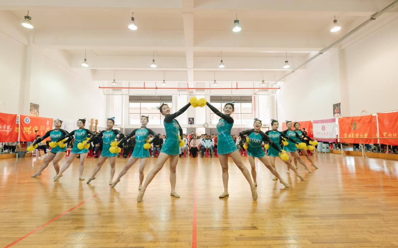 期间,体育学院带来了原创歌曲《体育之光》合唱、体育舞蹈和花球啦啦操等精彩表演,赢得了全场热烈掌声。