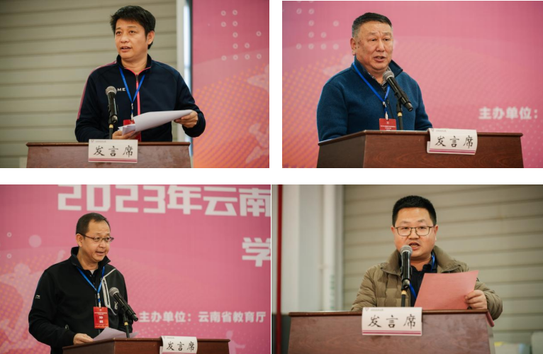 云南省学校体育教学指导委员会执行主任刘坚、云南省教育厅体卫艺处副处长李华海,云南省学校体育教学指导委员会秘书长聂真新、昆明理工大学体育学院院长蒋雪涛、昆明学院体育学院院长叶燎昆、红河学院体育学院院长万宇、大理大学体育学院党委书记李海光、云南民族大学体育学院院长杨祥全及各代表队领队、教练、参赛选手、裁判员等参加了闭幕式。闭幕式由体育学院党委书记华致雄主持。