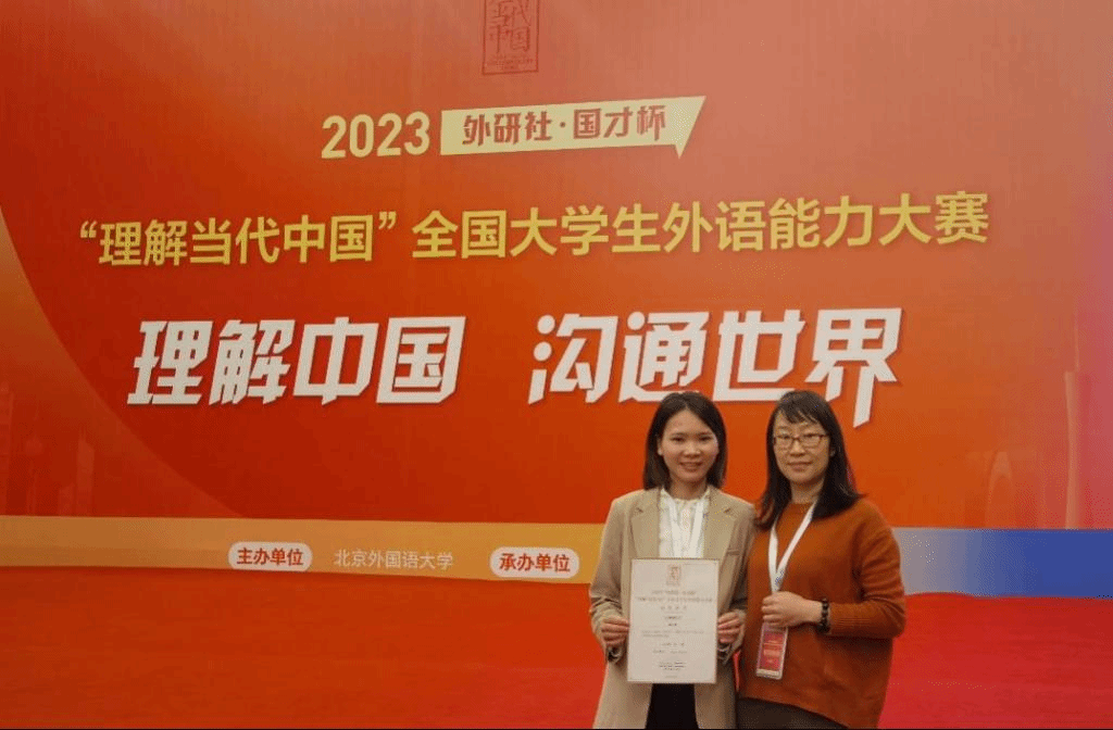 近日,在2023年“外研社•国才杯”“理解当代中国”全国大学生外语能力大赛中,外国语学院2021级英语专业李丹同学在英语组阅读赛项中表现优异获金奖,全国仅20名选手获金奖,2022级日语笔译专业陈月燕同学在日语组表现优异获银奖。这是我校学生在“外研社•国才杯”英语大赛中取得的最好成绩。