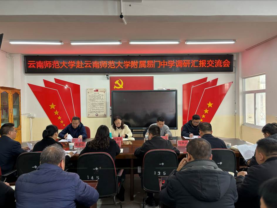 12月14日,副校长郝淑美一行到易门县云南师范大学附属易门中学调研,深入了解学校校园环境、师资队伍和教育教学工作,并同易门县委县政府主要领导、易门中学主要负责人及教师代表召开工作座谈会。基础教育集团党委书记曾东风,师大附中党委书记关磊,易门县委书记王华、县长何梅、副县长马致远、教体局副局长李翠仙,易门中学党委书记杨存建、校长李春龙等随同调研并参加座谈会。