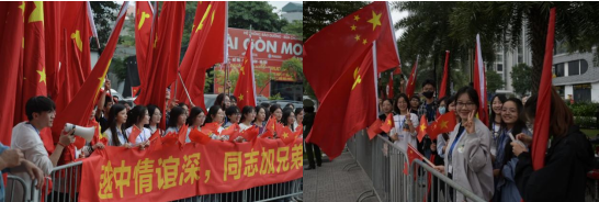 2021级越南语A班胡琴:非常荣幸能作为一名后勤志愿服务人员参与活动。当习近平总书记的车队从我眼前经过时,我心里油然而生一种自豪感和神圣感,激动之情难以言表,不禁热泪盈眶。我深刻认识到,正是中越友好不断前进的历史大潮,给了我们奋斗搏击、成就自我的广大舞台。作为一名新时代的中国青年,我们重任在肩。我会时刻鞭策自己,坚持心中梦想,并不断为之努力奋斗。