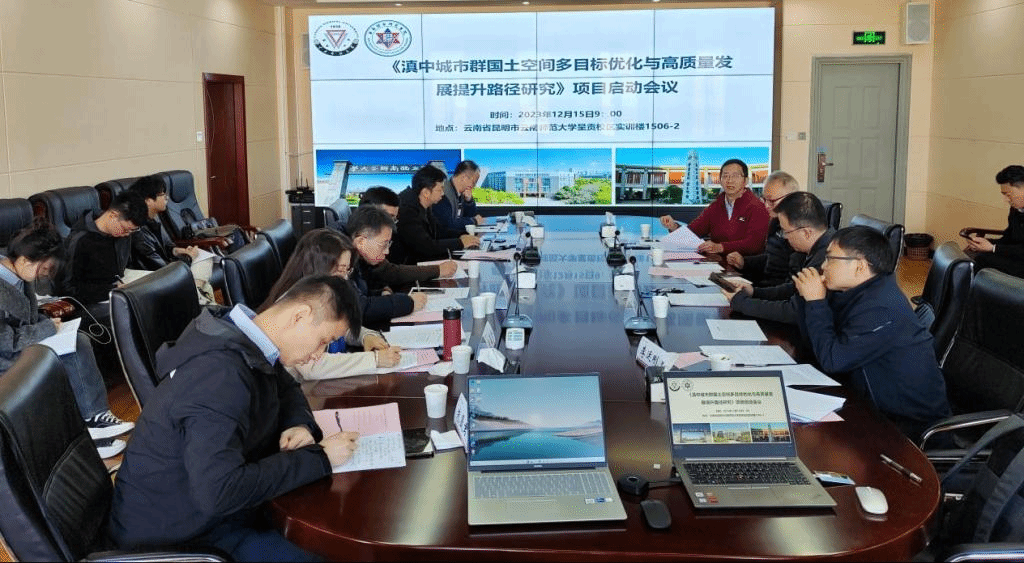 12月15日,2023年度西南联合研究生院科技专项基础研究重大项目——《滇中城市群国土空间多目标优化与高质量发展提升路径研究》项目启动会在我校呈贡主校区实训楼召开。会议由北京大学城环学院院长贺灿飞教授主持,我校副校长武友德教授,云南省国土资源规划设计研究院正高级工程师、总工程师张述清,云南省设计院正高级工程师朱德宝,云南省城乡规划设计研究院正高级工程师杨志华,云南大学国际河流与生态安全研究院研究员李运刚,云南大学赵筱青教授,北大国土空间规划设计研究院高级工程师李沂璠,北京大学朱晟君研究员,我校地理学部副主任熊理然教授参加了启动会。