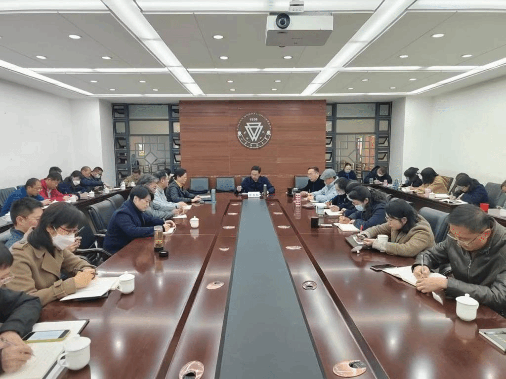 教务处处长陈新首先对期末考试相关工作做了布置,重点强调考试纪律、监考纪律、考试质量等方面的要求。陈新结合新一轮审核评估的要求,对一流课程建设、教师教育发展、课堂教学质量提升、实习实践、毕业资格审核、教学事故处理、教务运行、审核评估学院要求等工作进行通报和安排。教学质量监控与评估中心主任韦颖对学生评教、年度教学质量考核、师范专业认证、常态化教学督导等工作进行通报和安排。