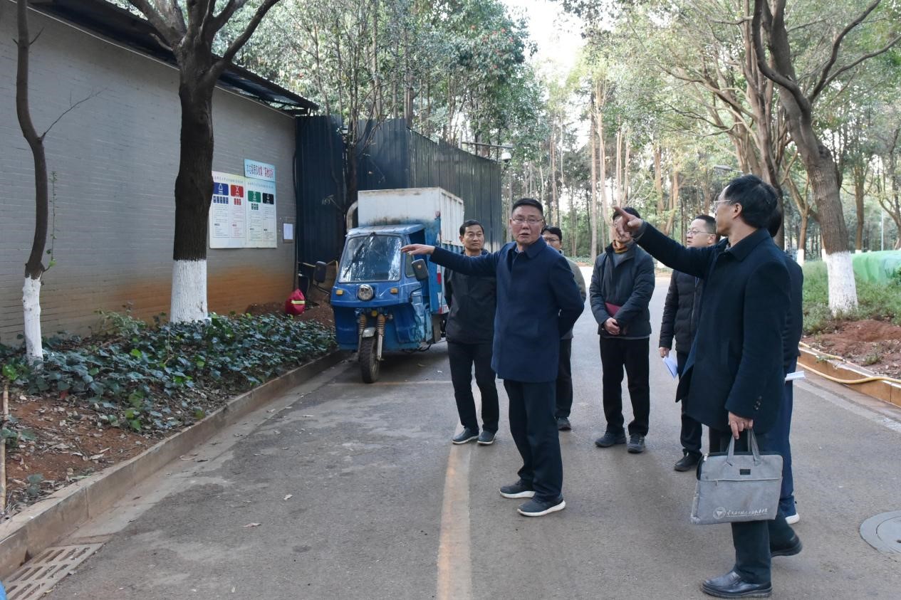 1月10日下午,王德强校长对呈贡校区校园生活垃圾分类工作进行调研。校长办公室、国有资产与实验室管理办公室、基建处、后勤保障服务中心等部门负责人随同调研。