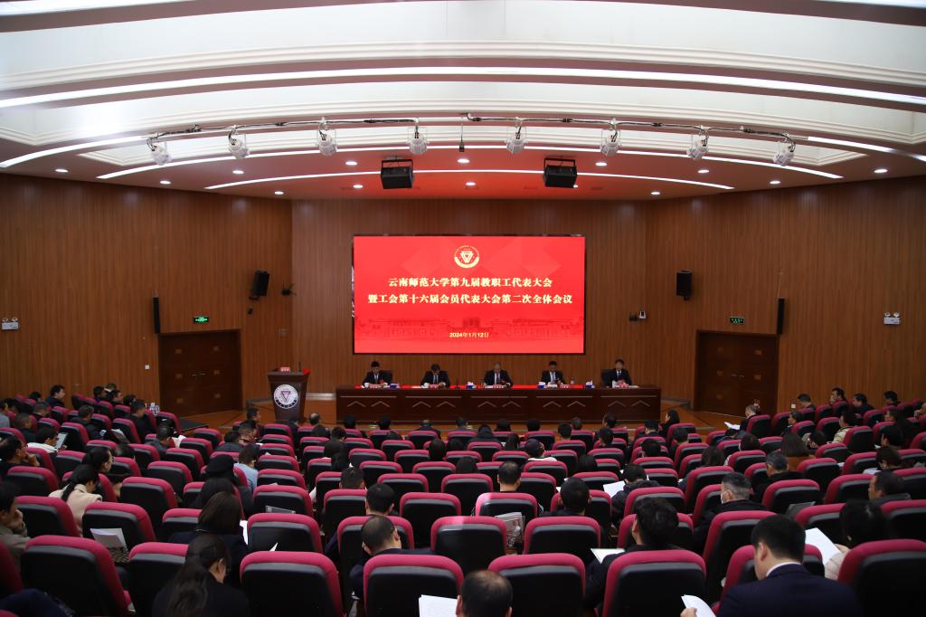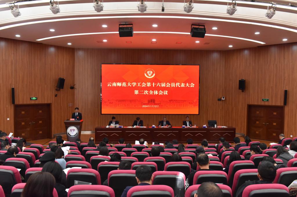 1月12日,云南师范大学第九届教职工代表大会暨工会第十六届会员代表大会第二次全体会议在呈贡校区汇学楼报告厅举行。会议听取了学校2023年度工作报告、财务工作报告;审议和批准了学校工会第十六届委员会工作报告、经费审查委员会工作报告。