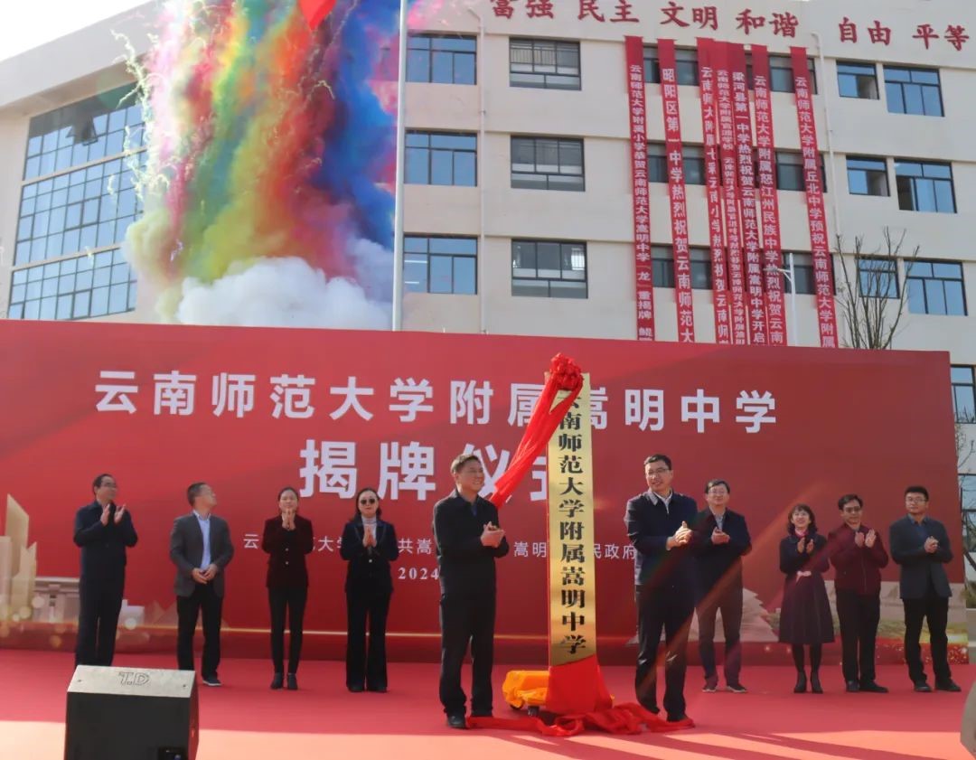 3月1日,云南师范大学附属嵩明中学揭牌仪式在嵩明县举行。我校校长王德强、嵩明县委书记李进波共同为学校揭牌。嵩明县委副书记、县长武春禄主持揭牌仪式。