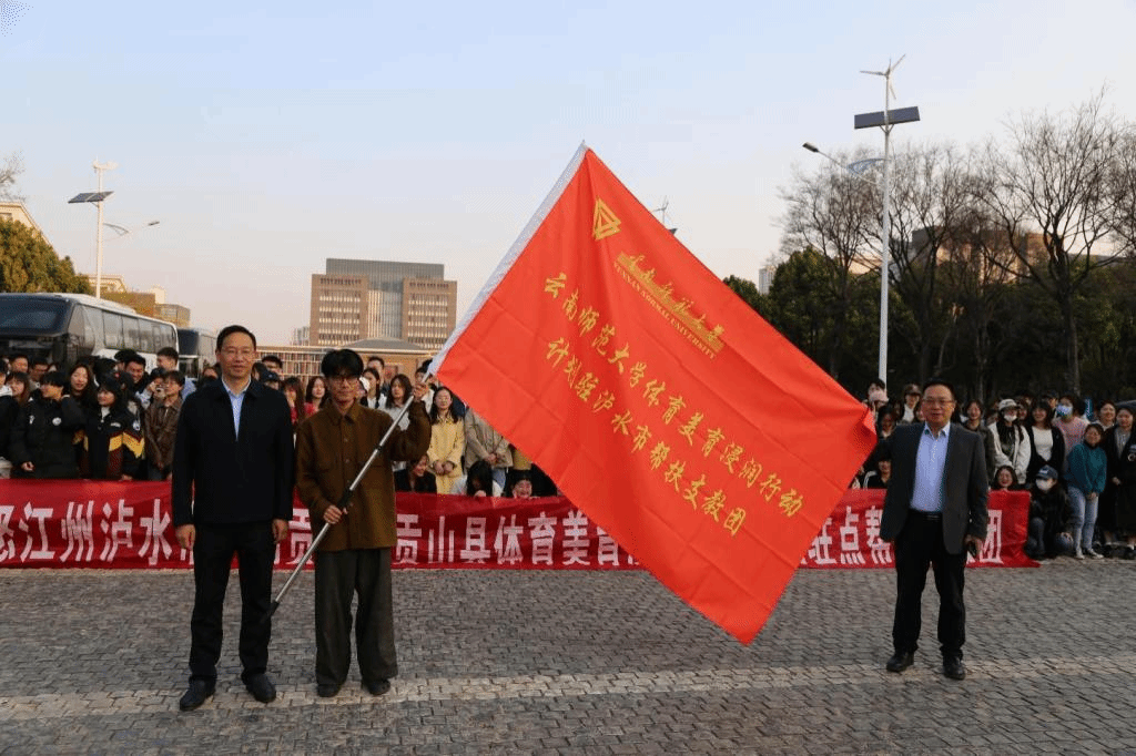 3月10日,我校第二轮体育美育浸润行动计划驻点怒江州帮扶支教团出征仪式在呈贡校区举行。校党委常委、副校长陈正权,教务处处长陈新、公共艺术教育中心副主任何纾,教育学部、音乐舞蹈学院、体育学院、美术学院主要负责人、带队教师、第二轮帮扶支教团全体派驻师生参加了出征仪式。