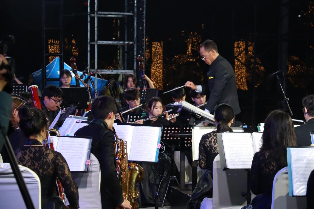 为深入开展“学习二十大 永远跟党走 奋进新征程”主题教育实践活动,引导青年大学生深入基层、服务群众,助力乡村振兴,推动金沙江流域生态文化旅游发展,应昭通市绥江县人民政府邀请,我校学生管乐团于3月10日晚参加了由昭通市文化和旅游局、中共绥江县委、绥江县人民政府共同主办的“首届金沙江生态文化旅游推介会暨‘浪漫金沙 诗意绥江’第二届李白花开文化旅游宣传推广活动”,为当地群众献上了一场精彩的“金沙水拍”大型交响乐演出。我校党委副书记李宏,校团委相关负责老师以及学生管乐团全体骨干成员参加活动,校团委刘东老师担任指挥。