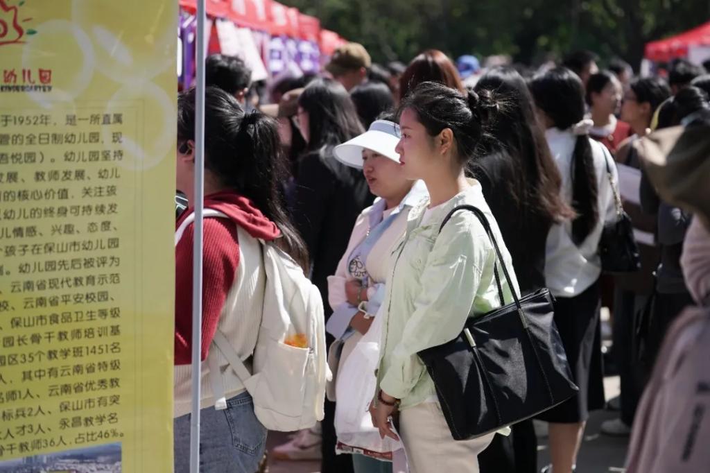 春光明媚,风和日丽。3月23日,云南省2024年公费师范生招聘会暨云南省2024届师范类高校毕业生双向选择洽谈会在云南师范大学呈贡校区西区篮球场举行。本次招聘会由云南省委教育工委、省教育厅主办,云南师范大学和云南省大中专毕业生就业服务中心承办,各州市教育体育局、云南省人才市场、昆明市公共就业和人才服务中心、云南省高校毕业生就业促进会协办,来自云南、广西、广东、北京、江西、浙江、贵州、江苏、山东、四川、湖南、内蒙古、海南、上海等14个省(市、区)共393家用人单位(省内用人单位353家,省外用人单位40家),近2万名毕业生参加了招聘会。云南省大中专毕业生就业服务中心主任杨宏伟、云南师范大学副校长陈正权到招聘会现场指导,与用人单位代表和毕业生亲切交流,详细了解招聘岗位的设置数量、毕业生的求职意愿和签约情况,并鼓励广大同学抓住机会、大胆尝试,理性规划职业生涯,积极投身基层建设。