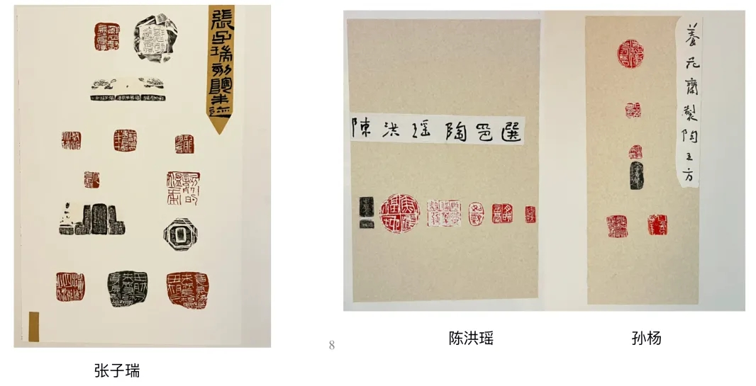 展览展出了来自日本、韩国和全国一线篆刻家的陶印作品以及我校美术学院师生创作的作品,作品集中呈现了当代中青年篆刻家在陶印创作上的基本风格,也展现了我校美术学院师生在陶瓷印领域的探索与成长。展览分为印屏展示和实物展示两个部分,印屏展示主要以作品的印面和边款呈现为主,采用印、拓等多种方式,作品富有设计感。实物展示主要展示印钮的烧制工艺与设计,包括柴烧、瓷泥釉烧、红陶、黑陶等不同形态,造型兼具经典与创意。