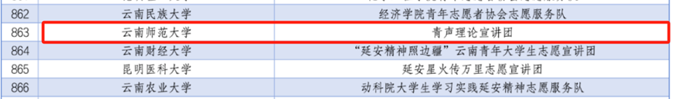 目前,团队有志愿宣讲员110名,分为4支宣讲队伍20余个特色主题,共开展常规宣讲180余场,社区宣讲20余场,受众达5万余人。宣讲团成员多次参加校内外宣讲活动,具有丰富的宣讲经验,通过开展青春分享课、“云师青年说”等特色活动,以“同龄人讲给同龄人听”等青年学子喜闻乐见的方式,把党的创新理论送到同学身边,在广大学生和社会群众中产生良好反响,光明日报、人民网、云南新闻联播等10余家媒体进行采访报道。